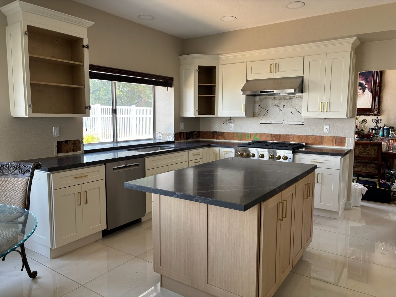 - 3/4" THICK VENEERED PLYWOOD ADJUSTABLE SHELVES - FULL DEPTH IN BASE CABINETS