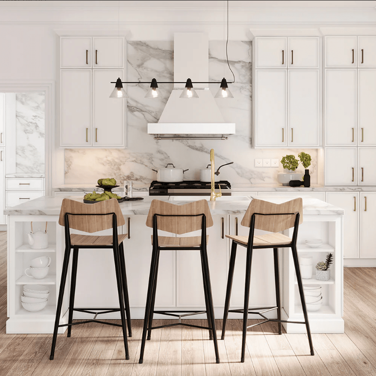 Soft close 6-way adjustable 105-degree concealed hinges | Undermount soft-close full extension stainless steel drawer glides | Supports up to 75 lbs | Knobs and pulls not included